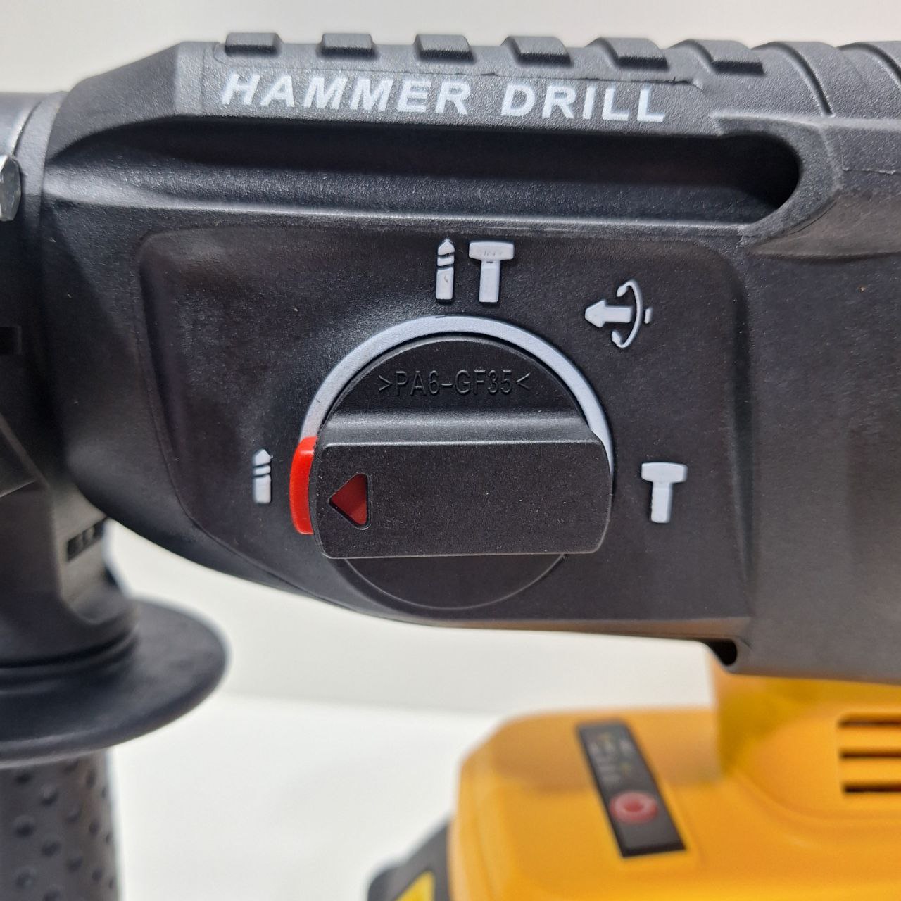 Аккумуляторный перфоратор dewalt предназначен для проведения нагруженных отбойных и сверлильных работ в домашних и рабочих условиях. Данная модель перфоратора обладает тремя режимами работы, которые позволяют выбирать мастеру оптимальный режим в конкретных ситуациях. Чтобы выбрать один из них, необходимо повернуть переключатель, находящийся с левой стороны инструмента, в нужную сторону. Благодаря патрону SDS-plus, легко менять оснастку. Регулирование оборотов происходит с помощью электроники, достаточно увеличить или уменьшить силу нажатия на пусковую кнопку. Модель поставляется с двумя аккумуляторами в чемодане. Скорость вращения и частота ударов регулируется усилием нажатия на пусковую клавишу, что позволяет вести точную работу с особо сложными и требовательными к аккуратному обращению материалами. Удобная D-образная рукоятка обеспечивает контроль над инструментом и меньше утомляет руки любого мастера. Перфоратор Dewalt имеет бесщёточный двигатель с медным сердечником. Скорость инструмента точная, а шум небольшой. Повышенная надёжность и долгий срок службы, позволяет максимально насладиться комфортной работой. Данная модель перфоратора является китайским производством под всемирно-известным брендом Dewalt .