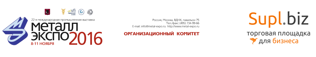 Приглашаем Вас 8–11 ноября 2016 г. принять участие в 22-й Международной промышленной выставке «Металл-Экспо’2016» и мероприятиях Недели металлов в Москве.