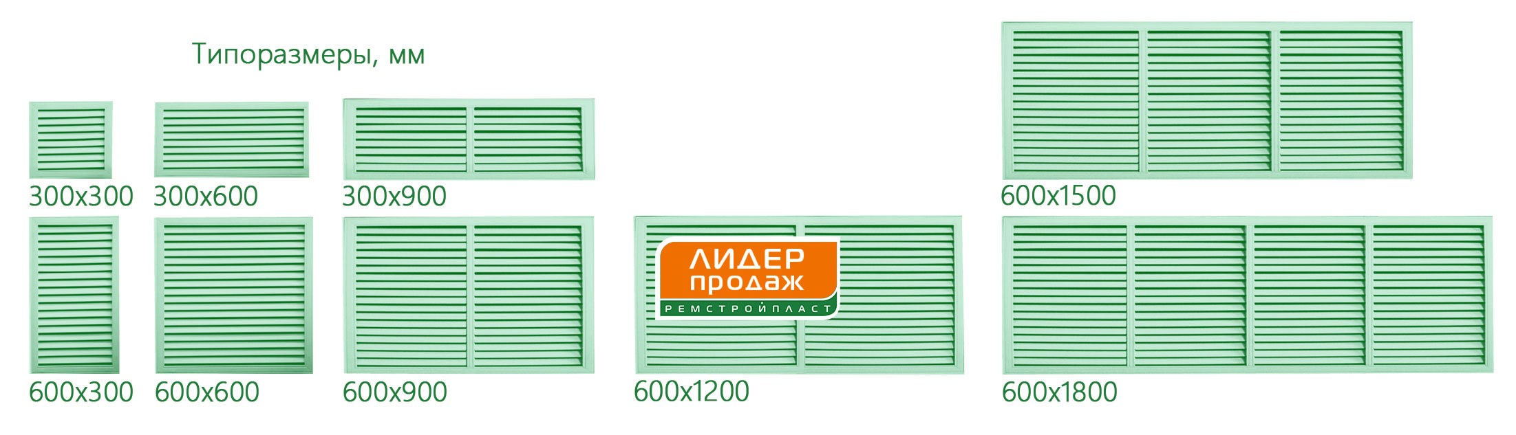 Типоразмеры (мм): 300х300, 300х600, 300х900, 600х300, 600х600, 600х900, 600х1200 (лидер продаж), 600х1500, 600х1800.