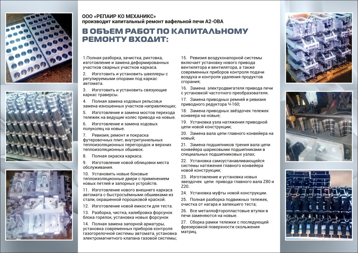 Производим вафельные печи А2-ОВА-Т30 и запасные части к ним, а также осуществляем капитальный ремонт. Товар сертифицирован.