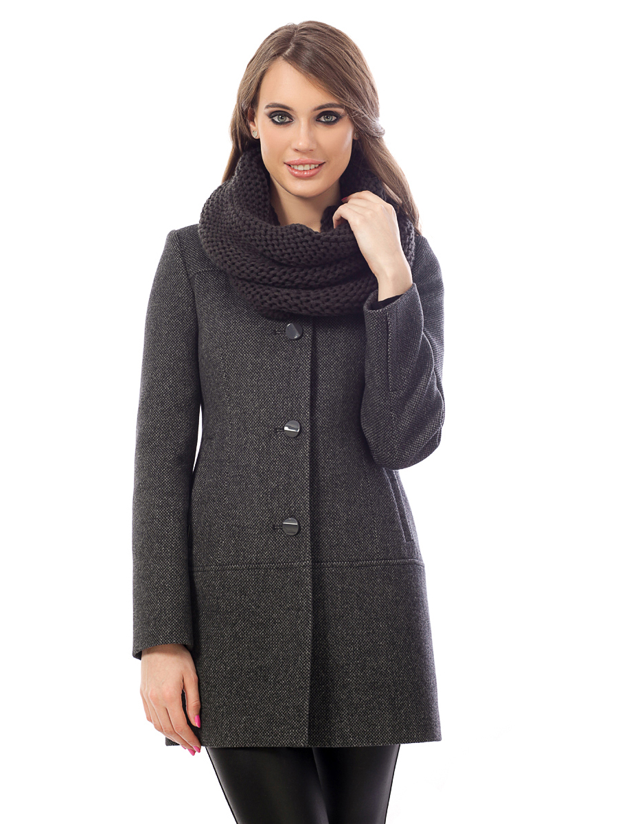 Размеры 40-52. Приталенный силуэт, застежка на пуговицы. Втачные рукава, карманы-листочки на кнопке. Трикотажный снуд в комплекте. Состав: 70% Шерсть; 15% Полиэстер; 10% Вискоза; 5% Другое