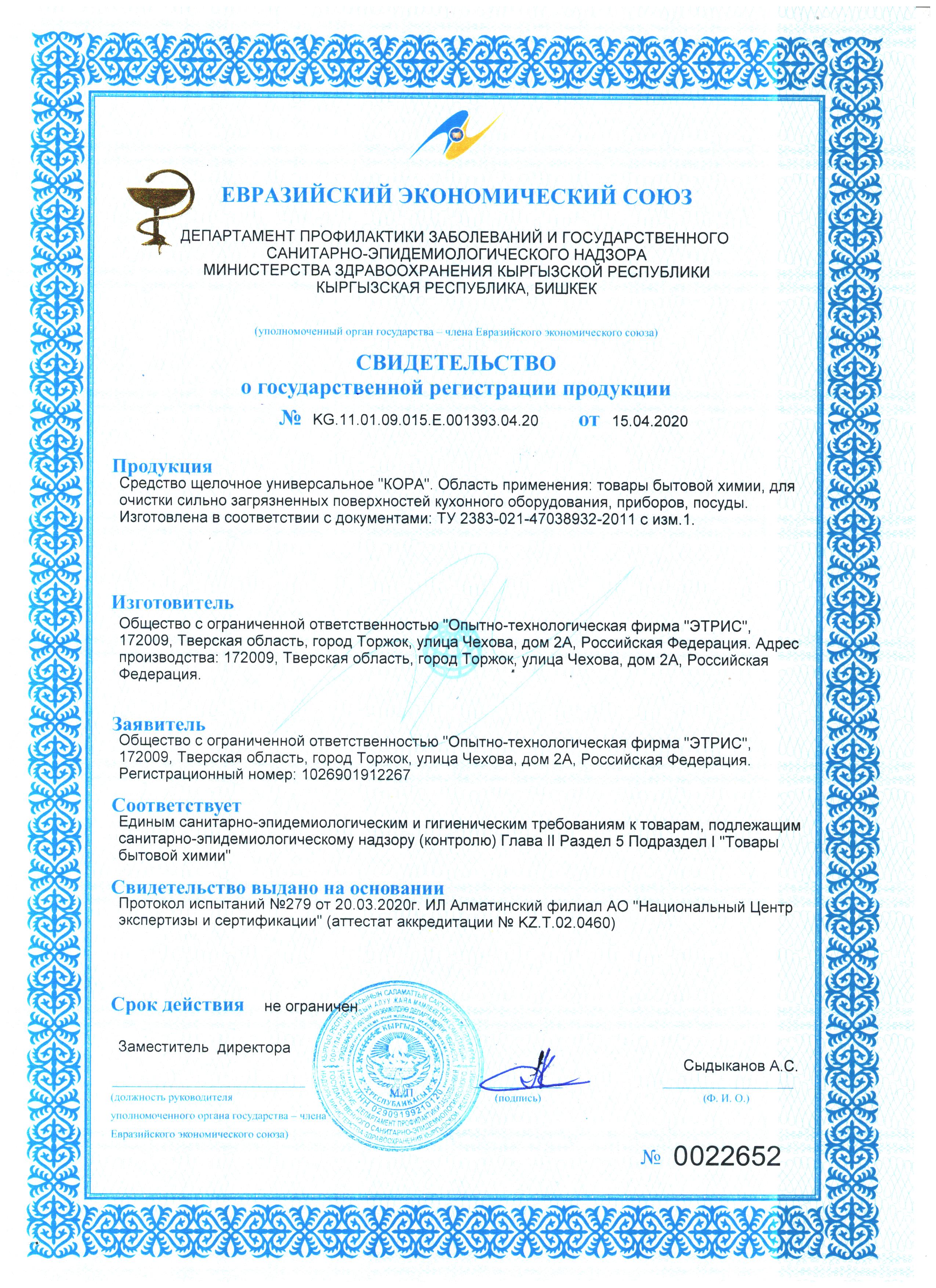 • сертифицировано на соответствие общих правил производства моющих и дезинфицирующих средств «Халяль» с разрешением маркировки продукции знаком «Халяль»;