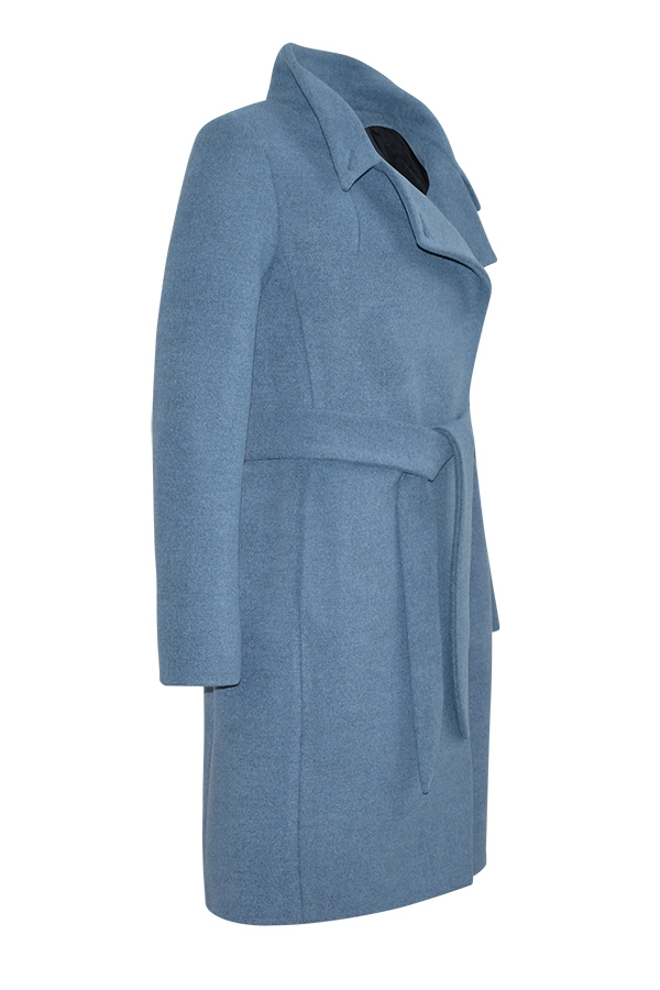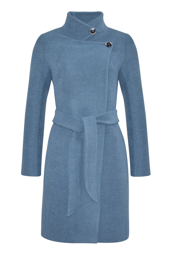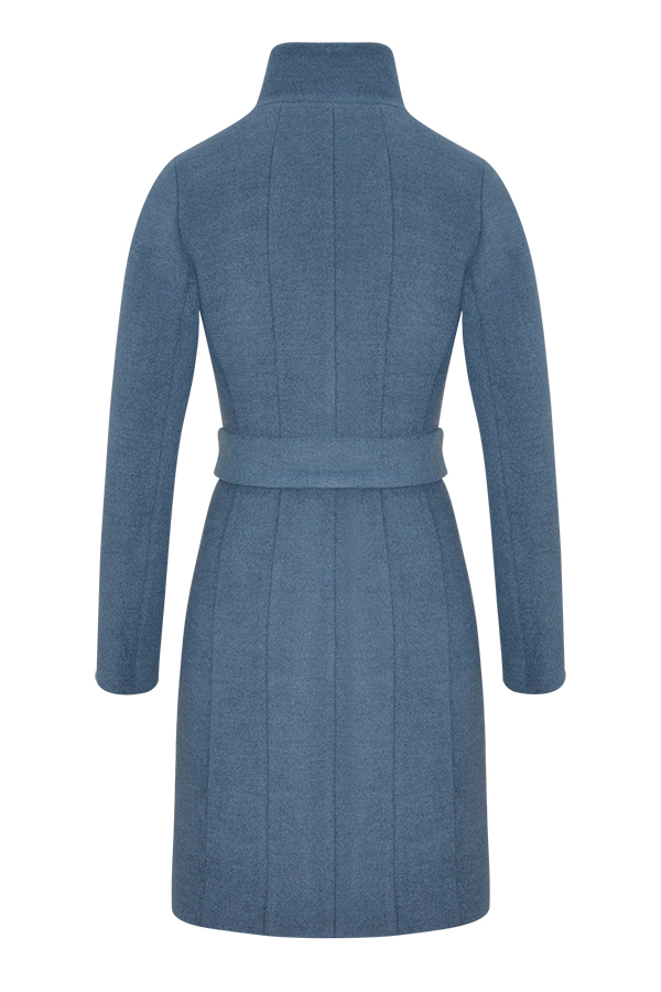 Пальто демисезонное прилегающего силуэта. Застежка на шесть пришивных кнопок и две пуговицы. Длина по спинке 93 см. Карманы расположены в рельефных швах полочки. По спине проходят рельефные линии, придающие изящность силуэту и женственность. Такая модель актуальна в любое время года.