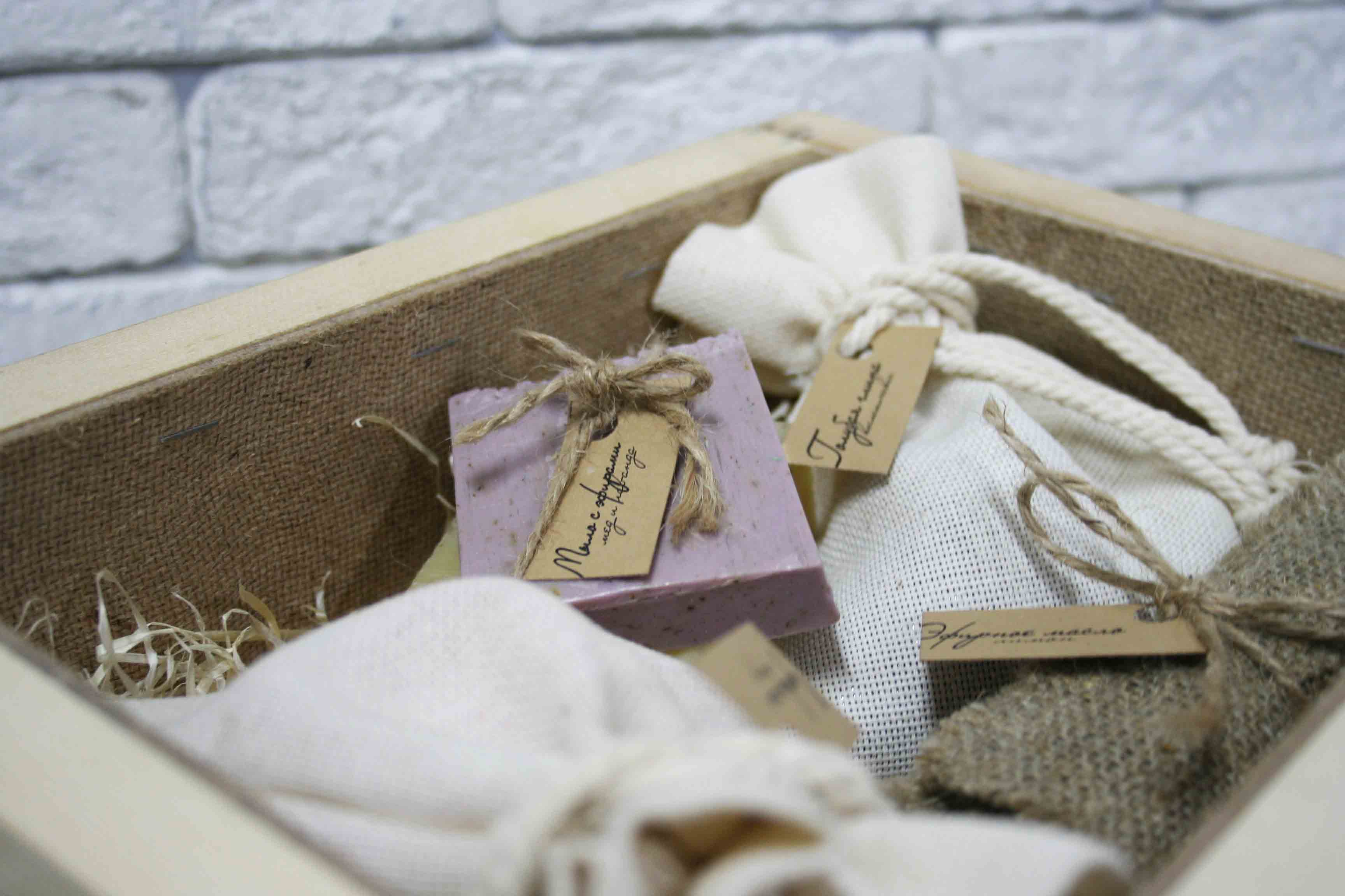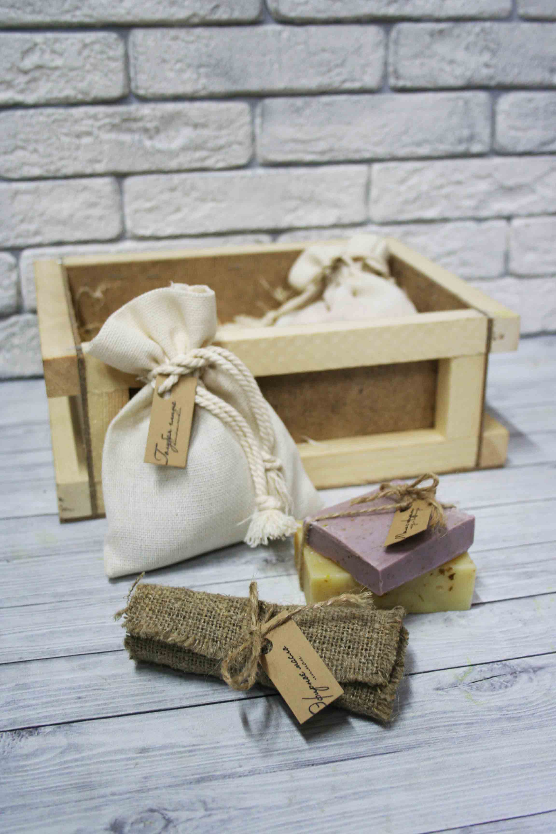 Артикул— cor4 Габаритные размеры: 260х200х100 мм. Тип упаковки – декоративная деревянная упаковка; Материал – белая берёза; Цвет — в ассортименте; Способ нанесение логотипа – цифровая печать; Состав набора: эфирное масло с ароматом лимона, 2 натуральных вида мыла ручной работы, упаковка соли для ванны 150 гр, упаковка глины косметической 150 гр.