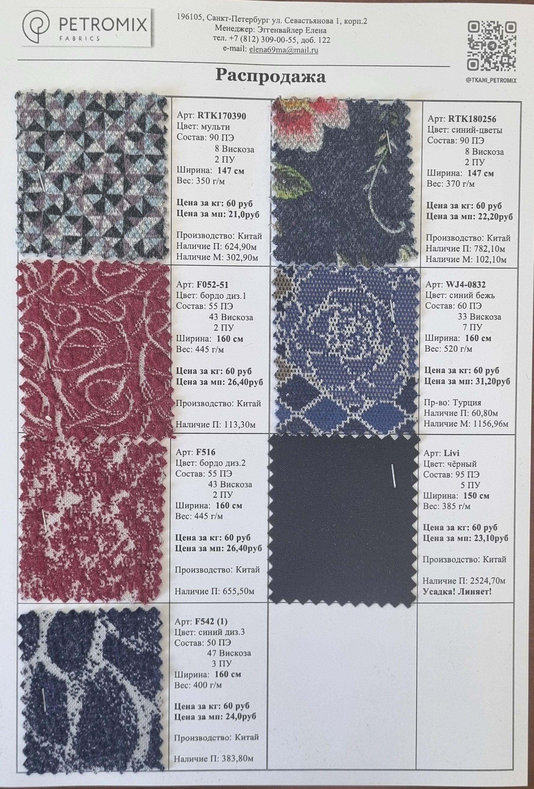 Общество с ограниченной ответственностью "ТК ПЕТРОМИКС" приглашает на распродажу трикотажных и костюмных тканей! Успейте купить тканевые полотна из Турции и Китая по цене 30 руб. за кг! Продажа оптом.