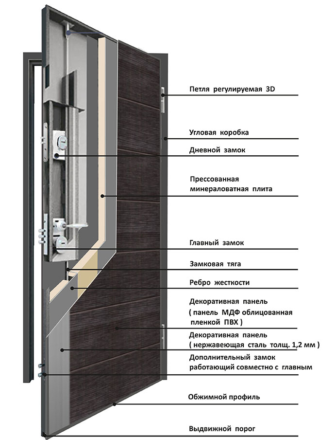 5 ребер жесткости, броненакладки толщиной 3 мм в местах установки петель и замков