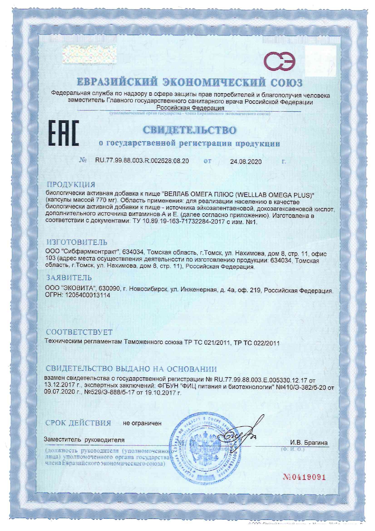 ОБЛАСТЬ ПРИМЕНЕНИЯ: в качестве источника эйкозапентаеновой, докозагексаеновой кислот, дополнительного источника витаминов А и Е.